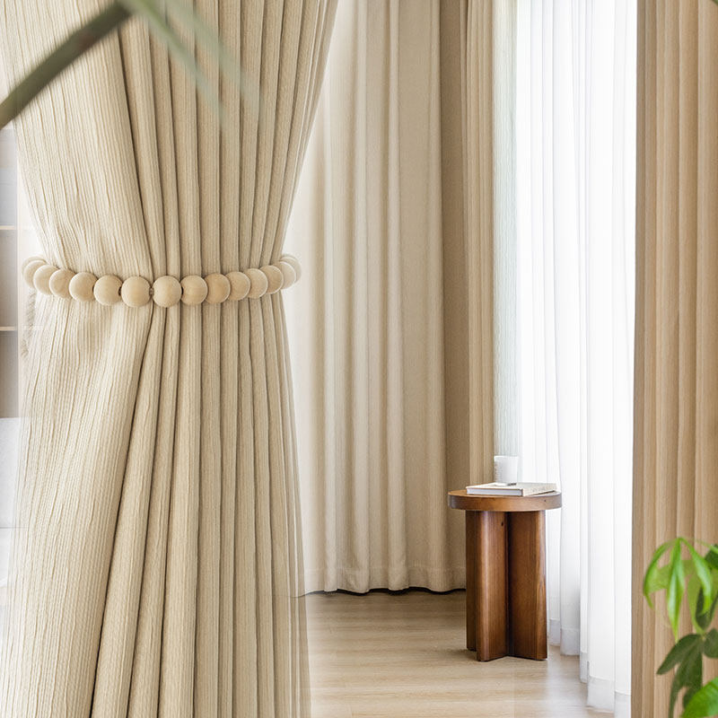 日式皱布棉麻窗帘布奶油杏卧室客厅阳台高遮光简约韩褶加厚隔热帘
