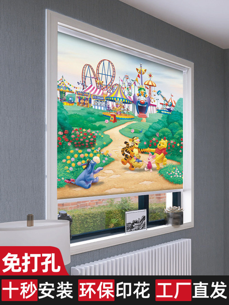 窗帘布遮光遮阳升降厨房浴室卧室卫生间免打孔防水家用卷拉式