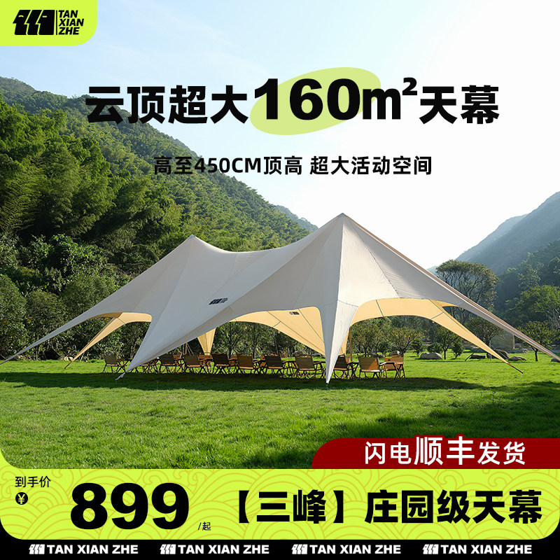 【三叉戟】骆驼户外露营黑胶天幕帐篷野营防晒装备野餐隧道遮阳棚