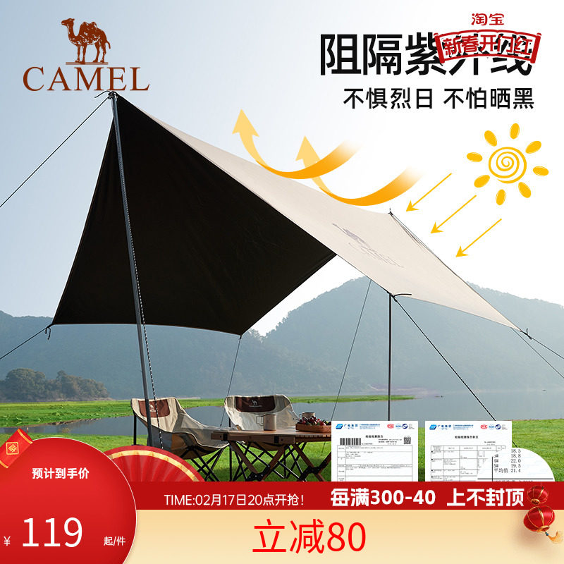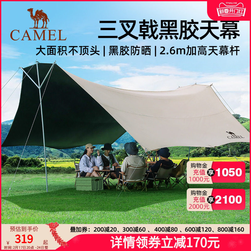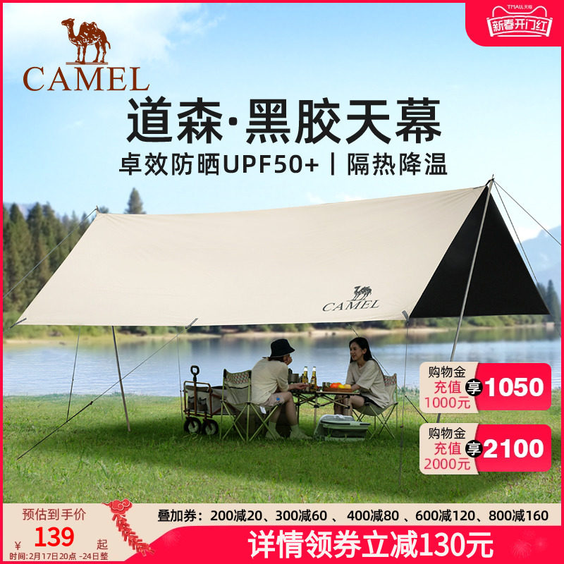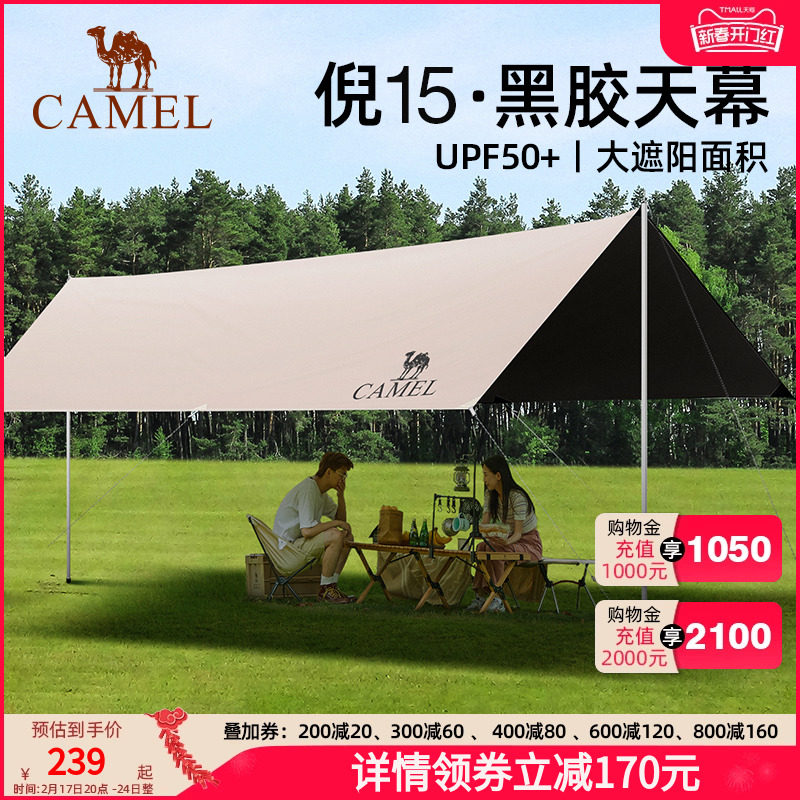 骆驼黑胶涂层天幕户外露营帐篷防晒防雨野营野餐遮阳棚防紫外装备