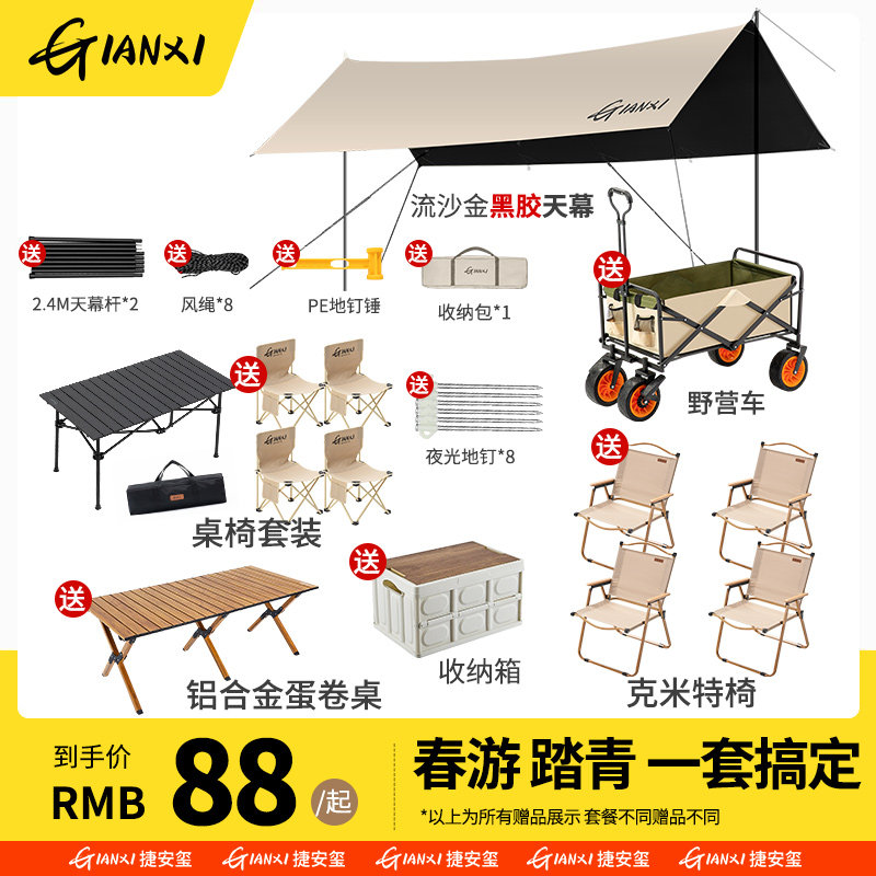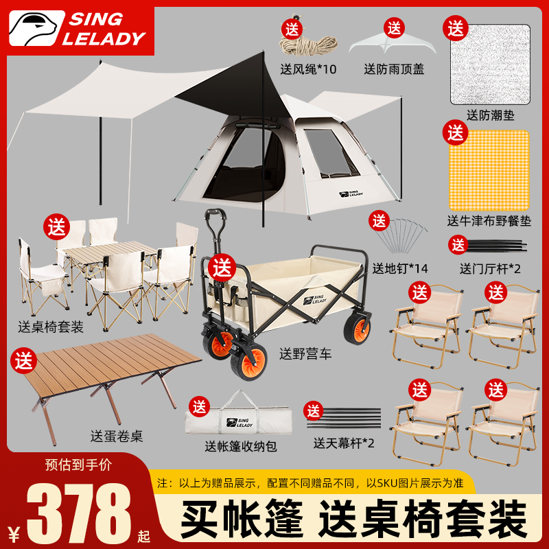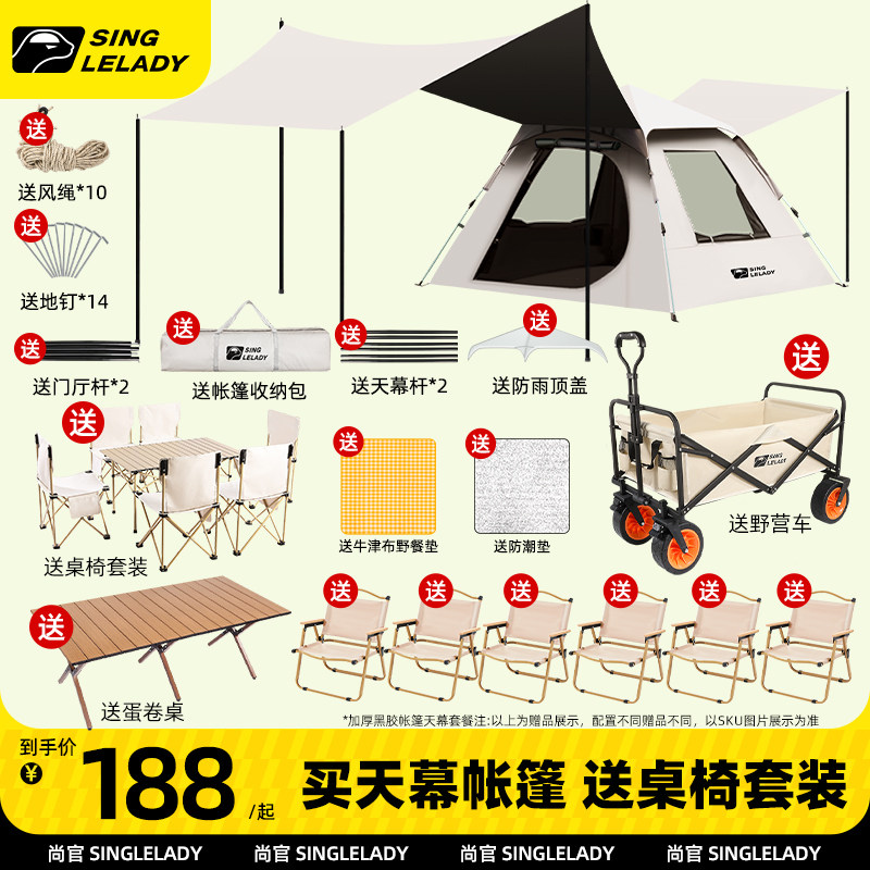 帐篷天幕户外折叠黑胶全自动露营桌椅套装野营野外遮阳棚装备全套