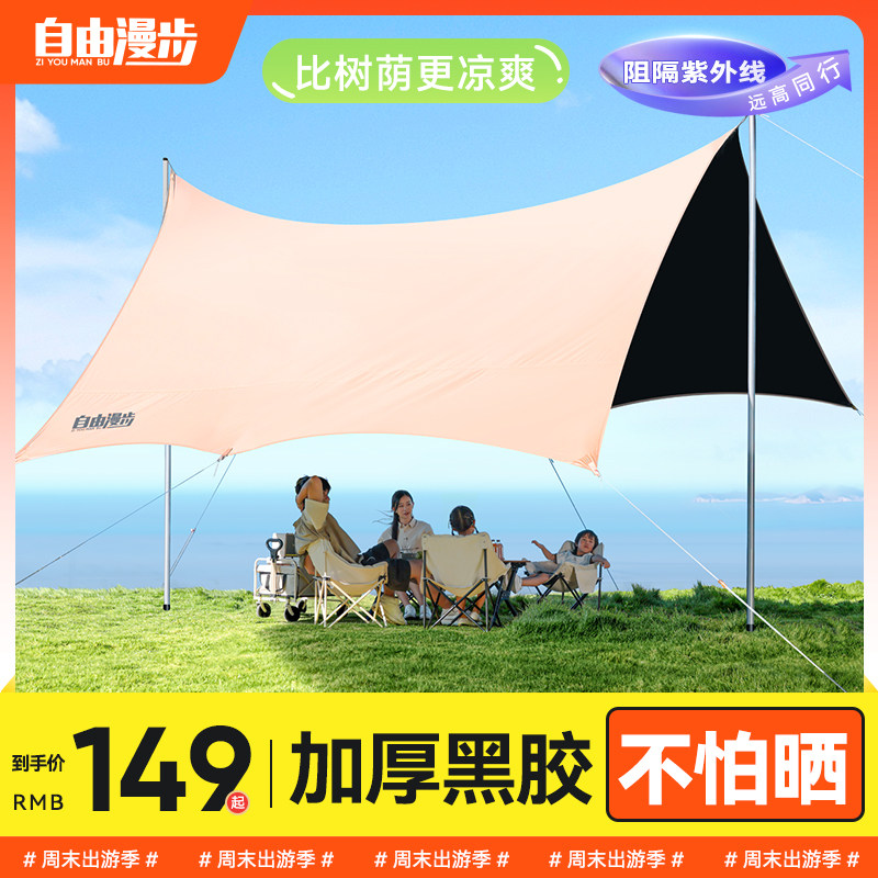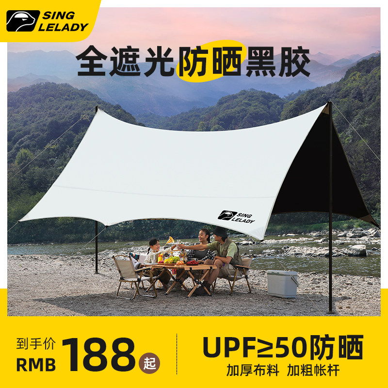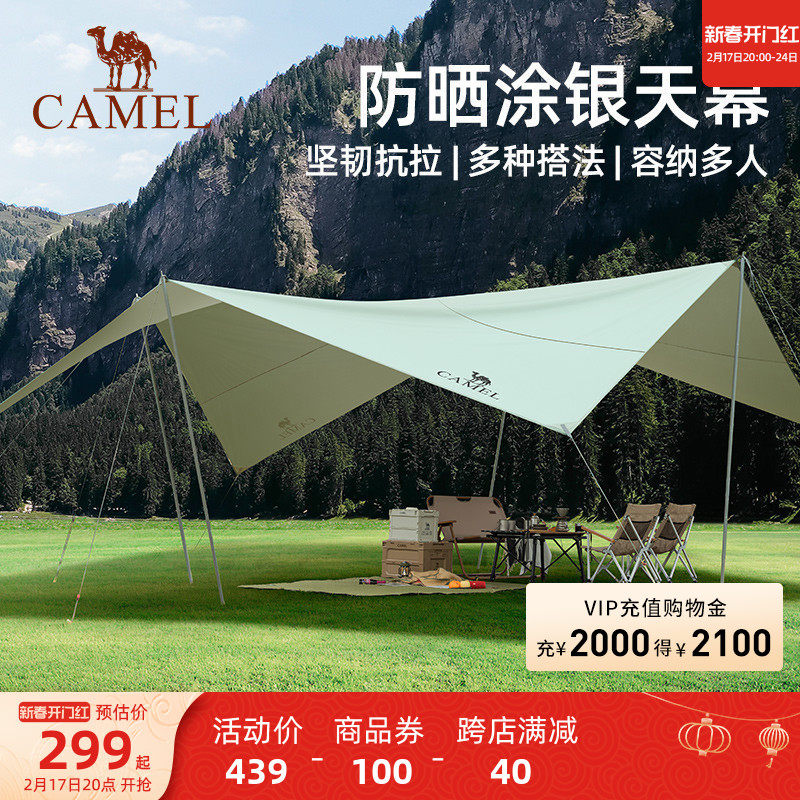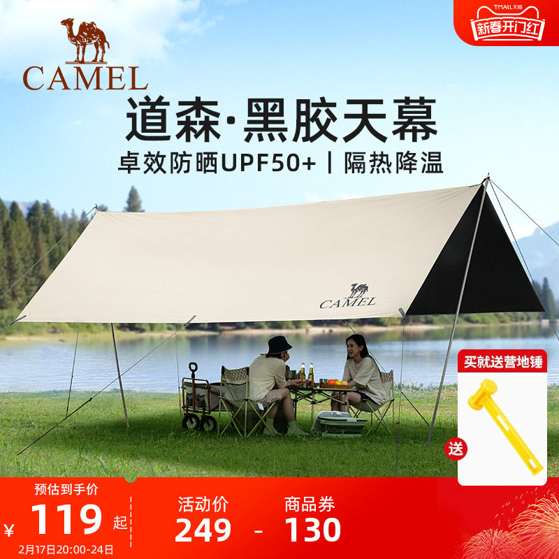 骆驼户外精致露营黑胶天幕帐篷遮阳便携式防晒防晒野营野餐大凉棚