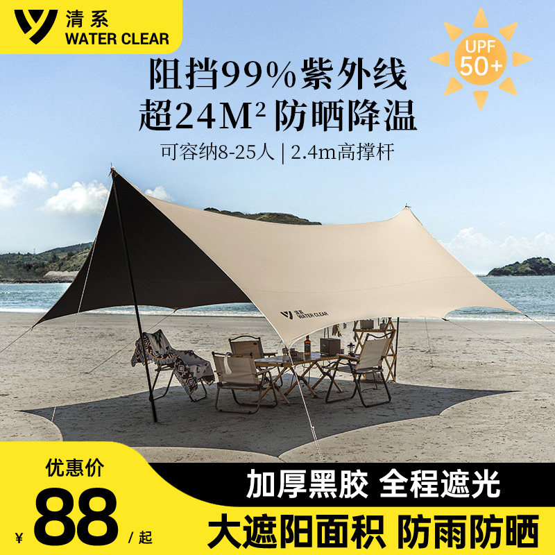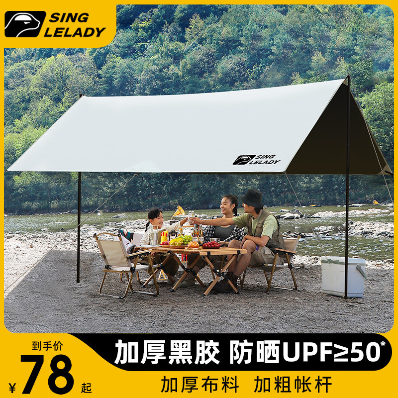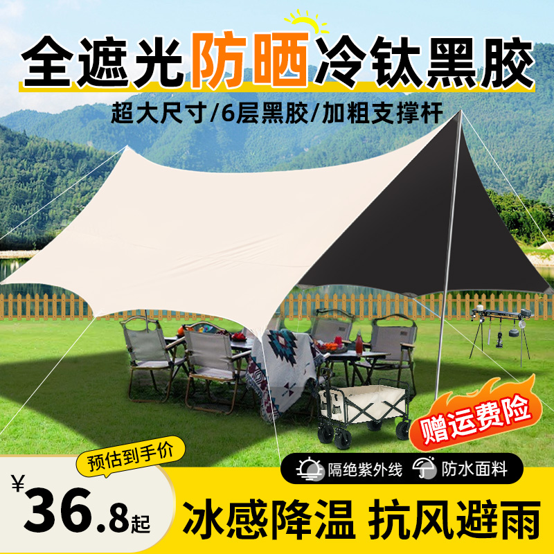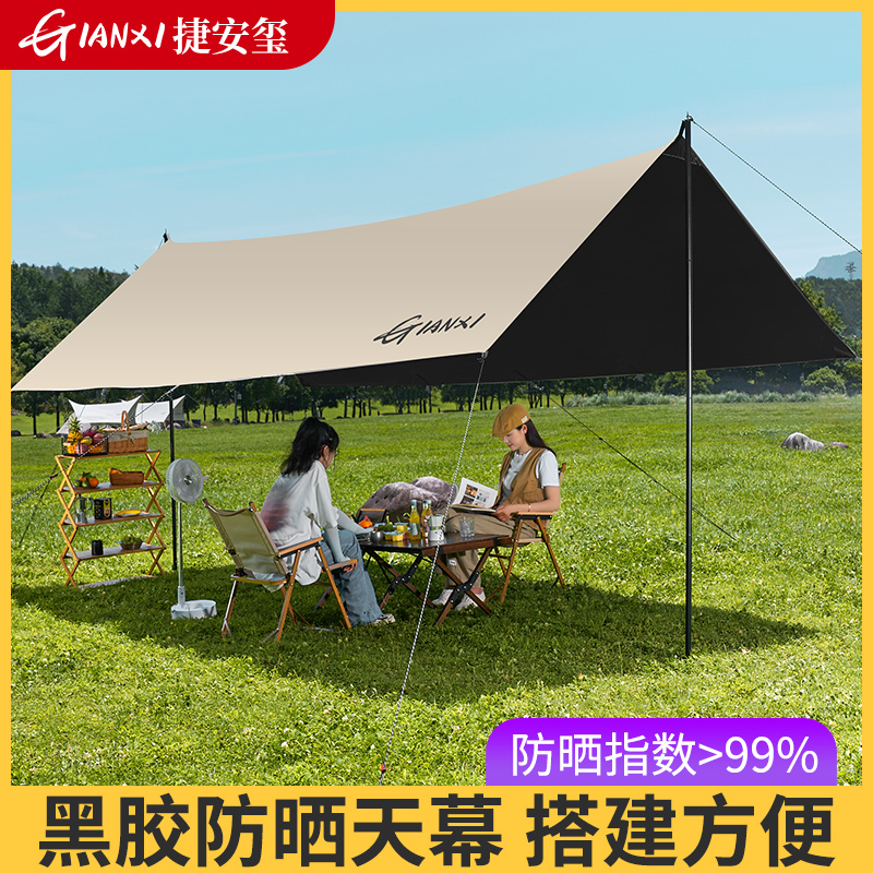 户外精致露营黑胶天幕帐篷便携式防晒防水网红涂银野营野餐遮阳棚