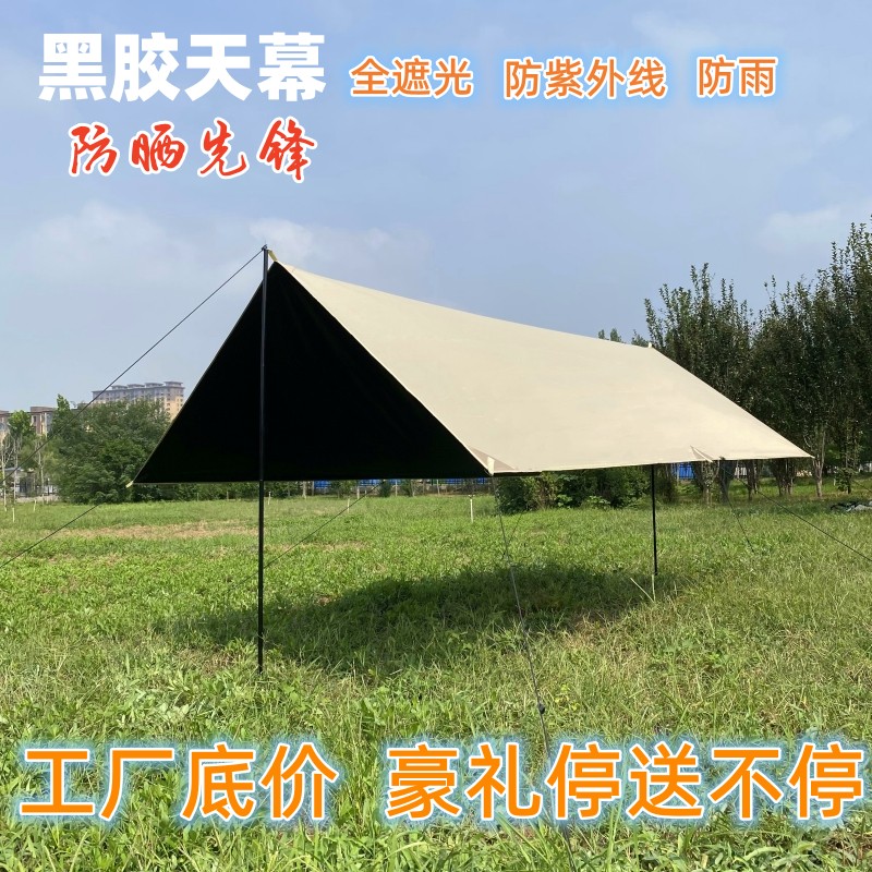 户外天幕帐篷黑胶防雨防晒遮阳棚野炊露营装备便携式加厚涂银幕布