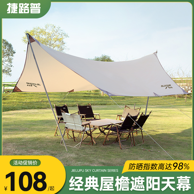 天幕帐篷户外露营野餐加厚黑胶天幕野营防晒遮阳棚专业遮阳帘全套