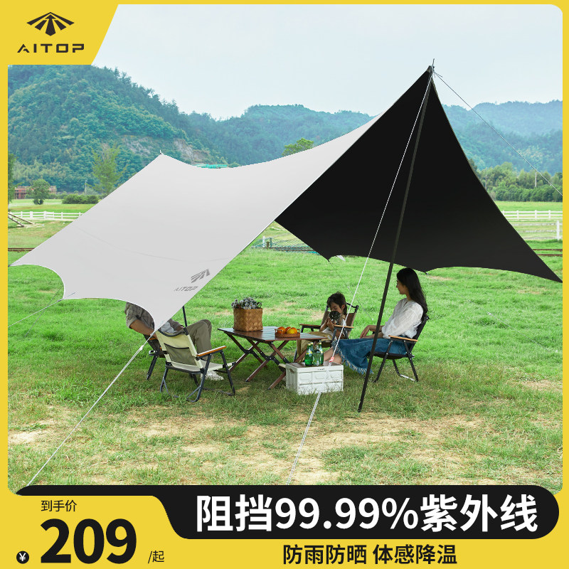 Aitop爱拓户外黑胶天幕防风防晒涂银野餐露营帐篷装备八角遮阳棚