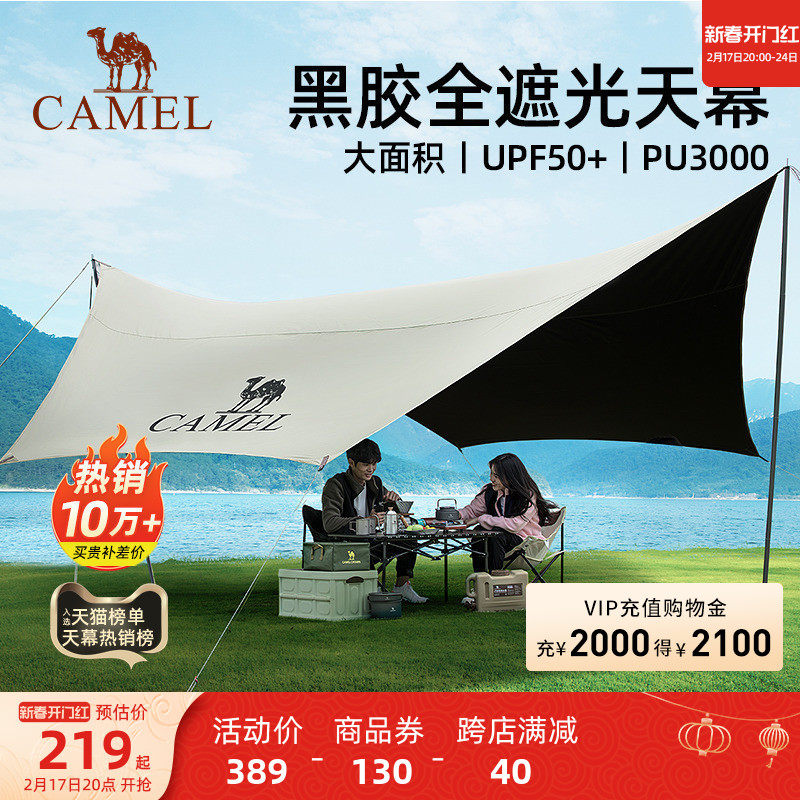 骆驼户外钛金黑胶天幕帐篷2024春夏露营野营防晒凉棚防雨遮阳棚布