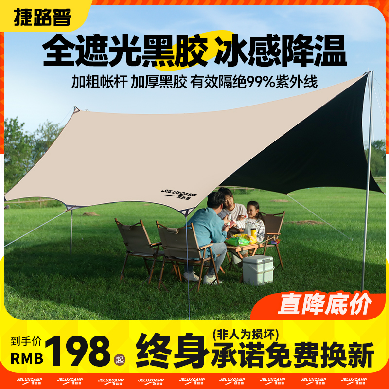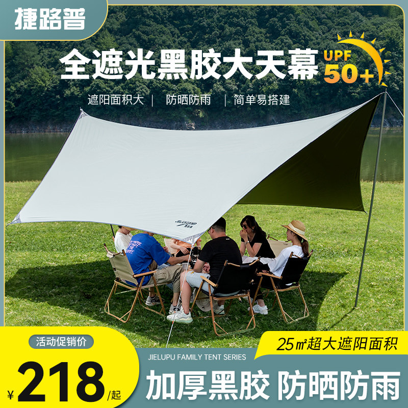 骆驼户外黑胶天幕帐篷露营加厚防雨防晒野餐野营大空间遮阳棚幕布