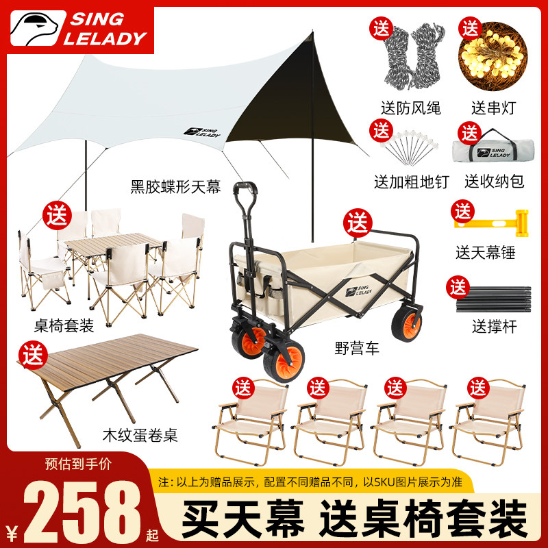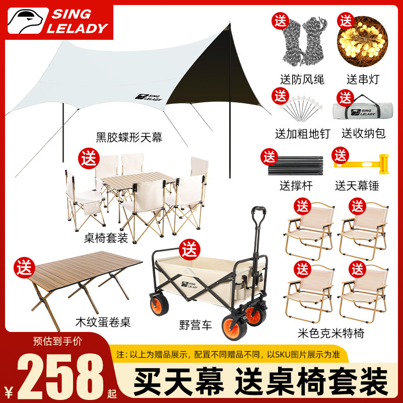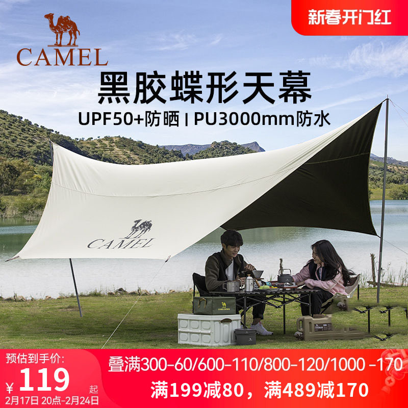 骆驼户外精致露营蝶形天幕帐篷涂银防晒防紫外线野炊便携遮阳棚