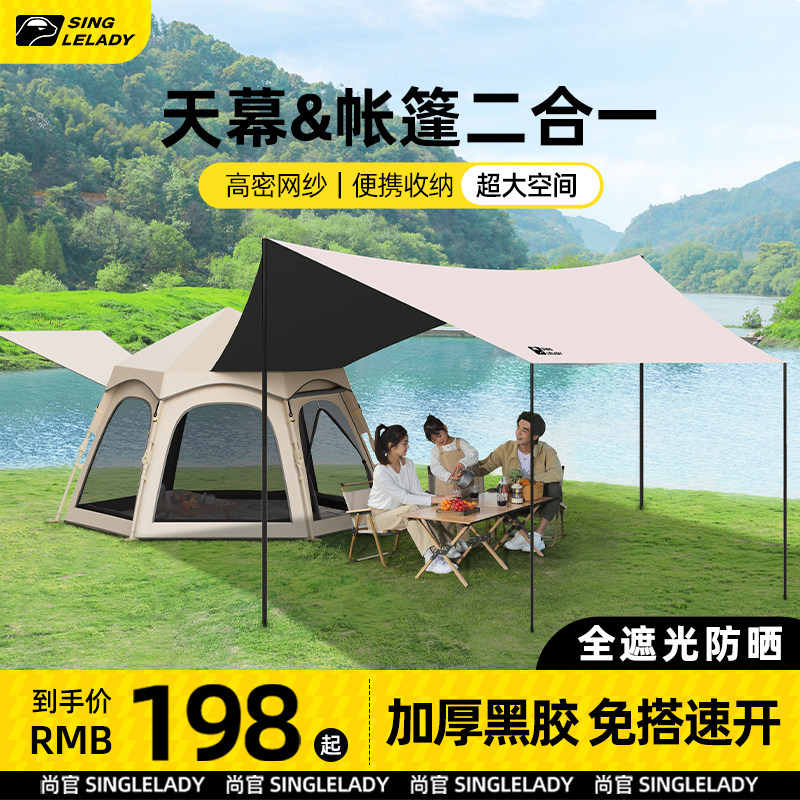 天幕帐篷二合一露营户外全自动遮阳棚黑胶防晒折叠便携式装备全套