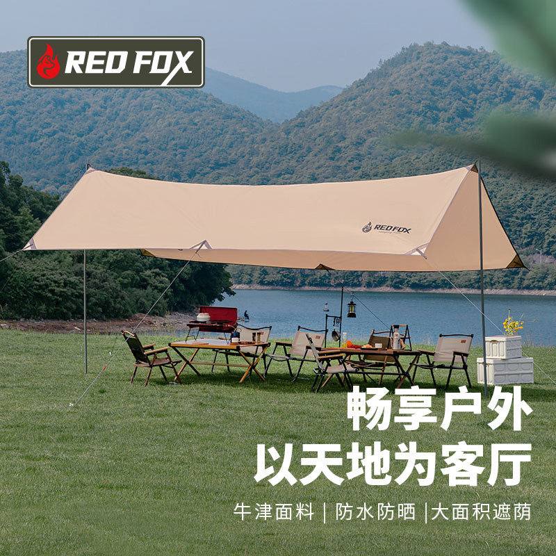 火狐户外天幕露营遮阳便携式帐篷防晒防雨野营大号遮阳棚四角幕布
