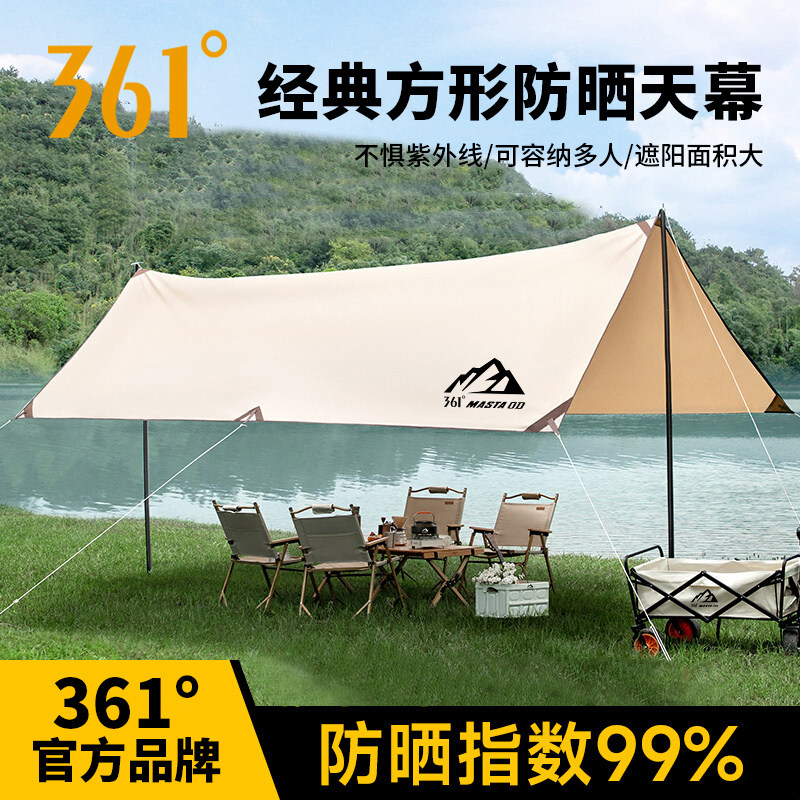361天幕帐篷户外防晒棚361度凉棚涂银幕布露营装备黑胶野营遮阳棚