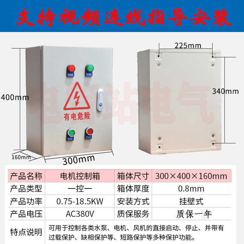 厂家三相电按钮启动停止箱电机风机水泵控制箱马达配电箱0.75-2.2