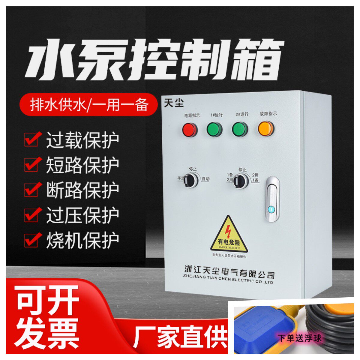 水泵控制箱一用一备双水泵浮球液位配电柜风机电机电控箱定制380V