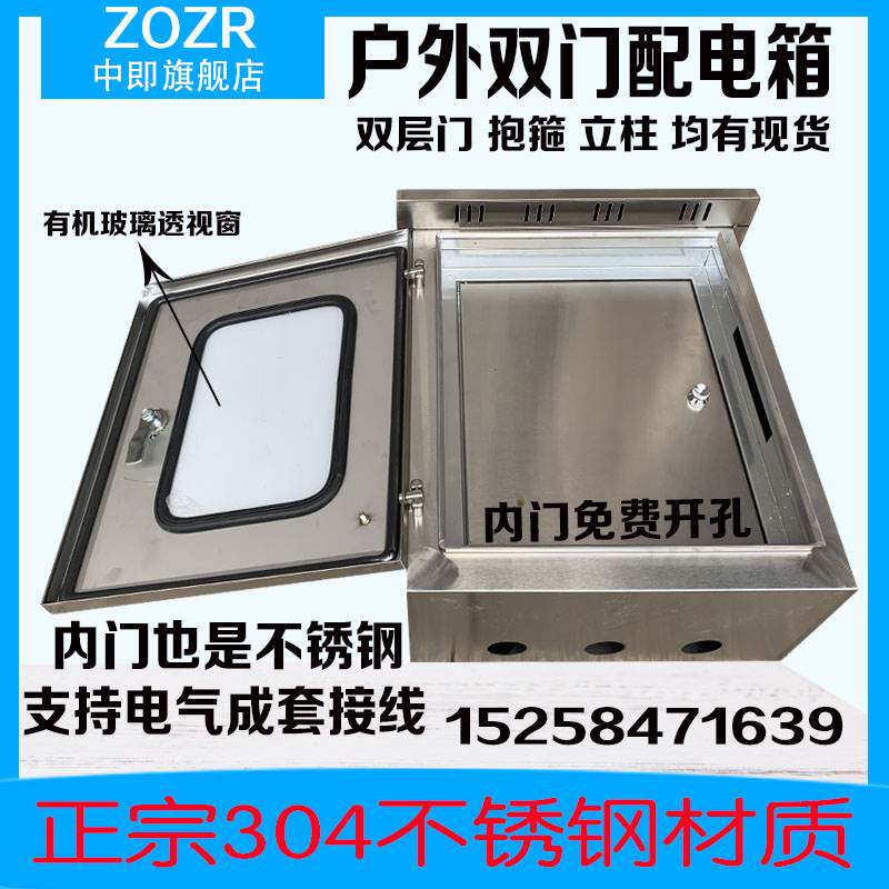 内外门户外304不锈钢双门配电箱防水箱双层门控制箱电控箱仪表箱