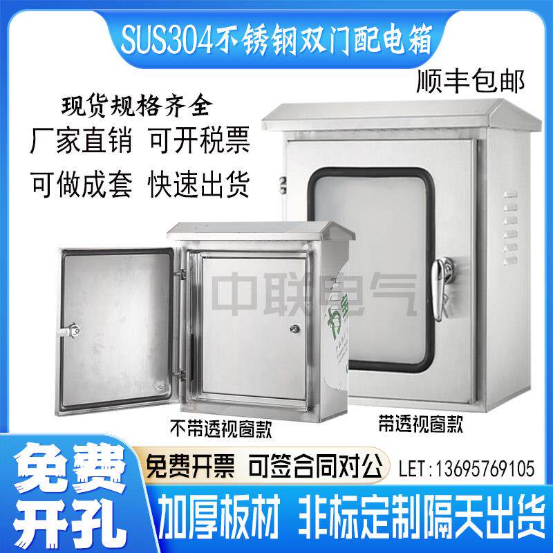 内外门户外304不锈钢配电箱双门控制箱按钮箱双门防水电箱仪表箱