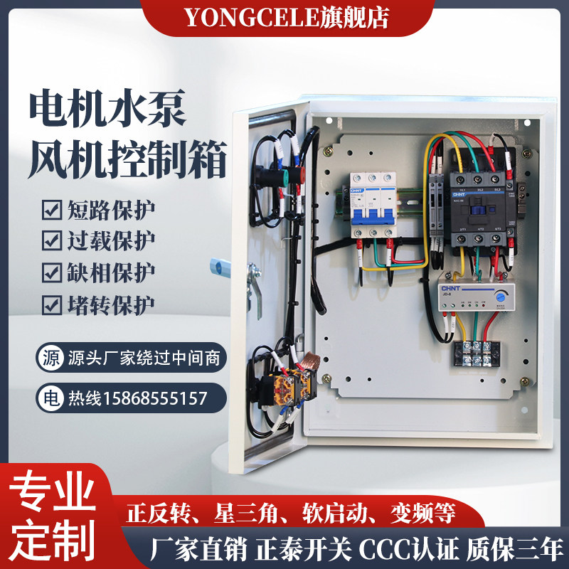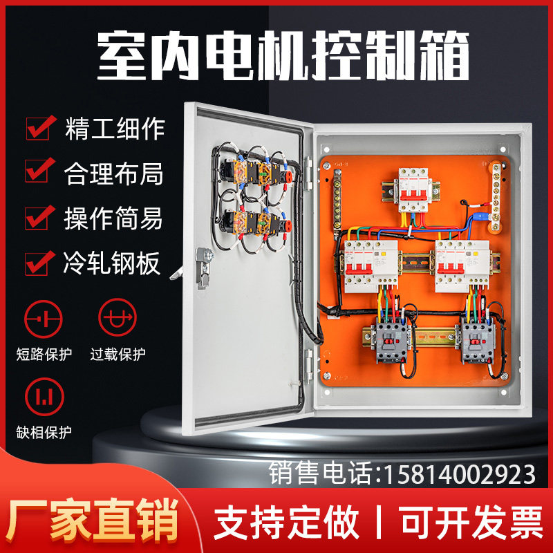 风机控制箱三相电机按钮启停电控箱水泵开关缺相保护器排烟配电箱