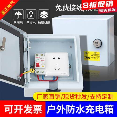防水带锁小配电箱家用室外新能源电动汽车充电箱多功能插座布线箱