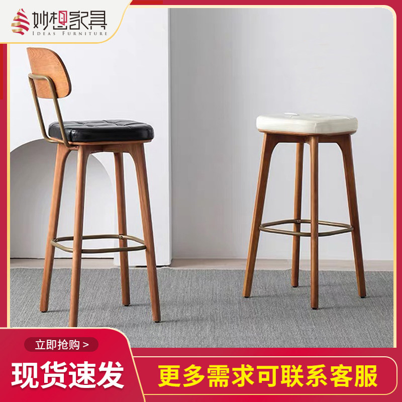 实木吧台椅现代简约皮吧椅轻奢家用酒吧椅设计师款高脚凳吧台凳子