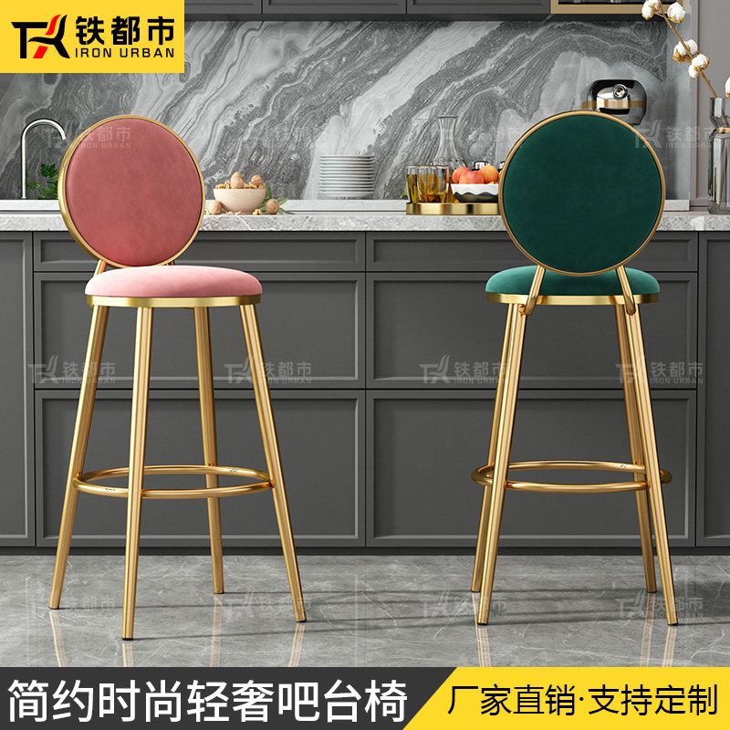 吧台椅北欧轻奢ins家用现代简约酒吧靠背金色前台收银台高脚凳子