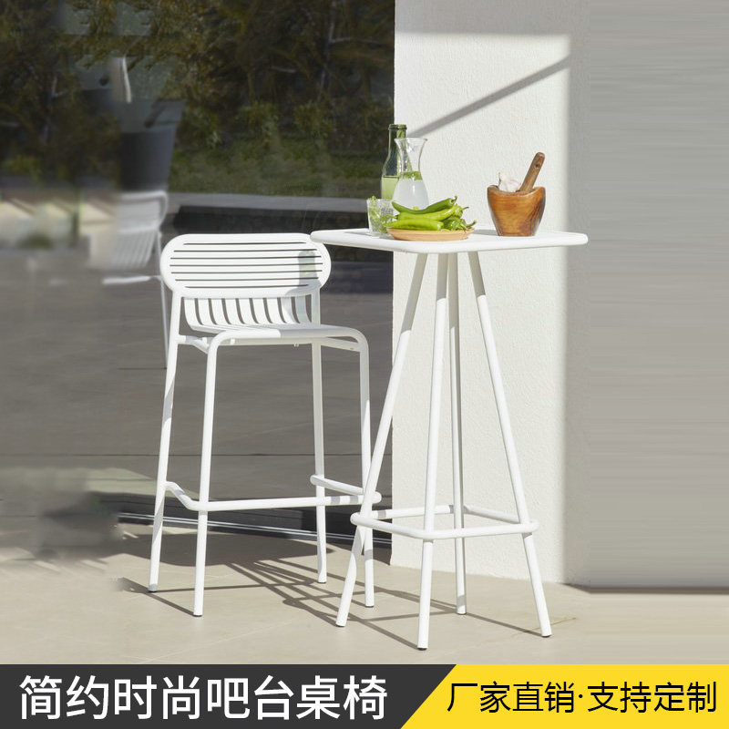 酒吧桌椅组合户外北欧露天庭院咖啡厅吧台桌椅休闲阳台靠背高脚凳