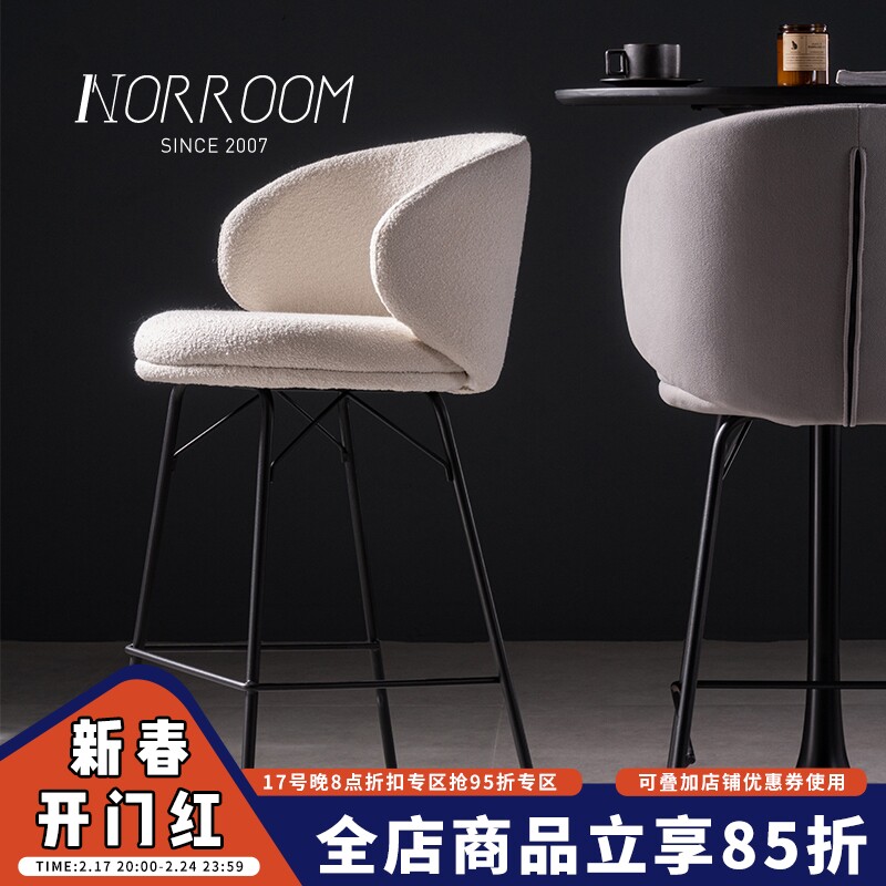NORROOM前台收银吧台椅轻奢椅子现代简约酒吧高脚凳家用靠背凳子