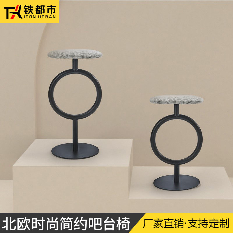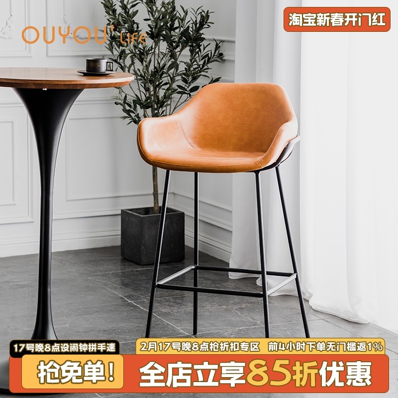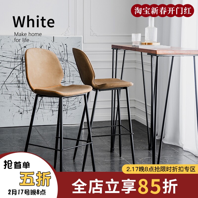 北欧吧台椅家用高脚凳子岛台现代简约铁艺收银前台酒吧椅靠背吧凳