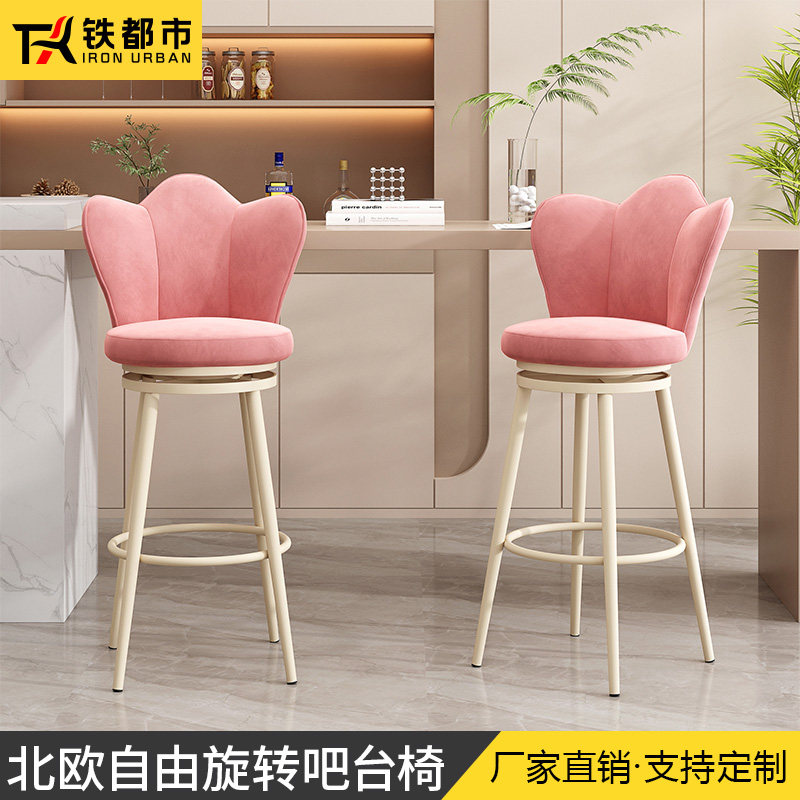 吧台椅旋转轻奢现代简约靠背家用酒吧前台奶茶收银台美容高脚凳子