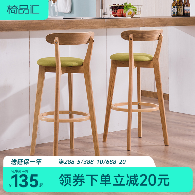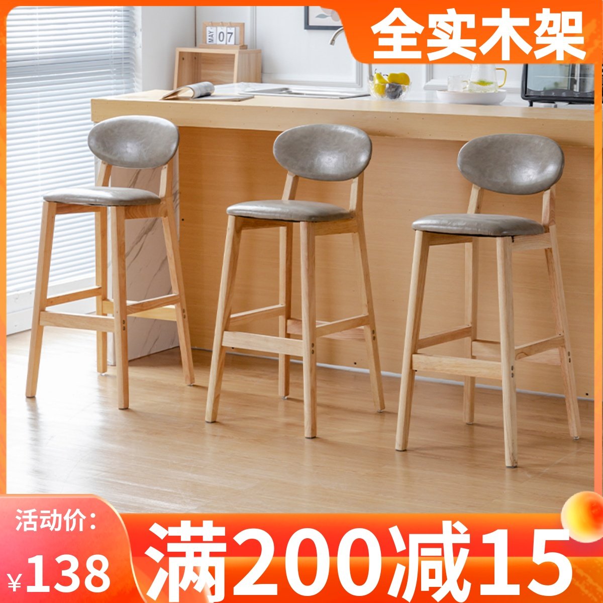 吧台椅家用实木高脚凳现代简约奶茶店前台靠背椅子北欧创意酒吧椅