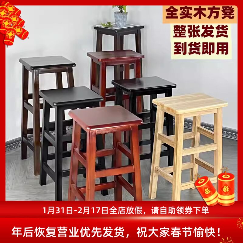 商用酒吧椅实木方凳复工高脚凳吧台椅家用高凳木凳子四方凳餐桌椅