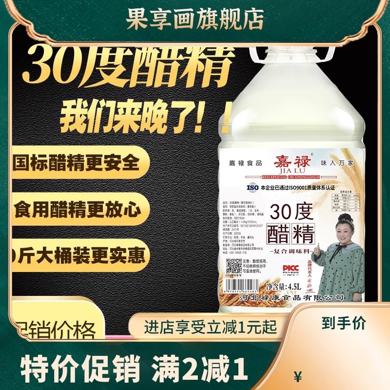 醋精30°高浓度白醋风味食醋洗脚泡脚专用去异味除水垢4.5L大桶装