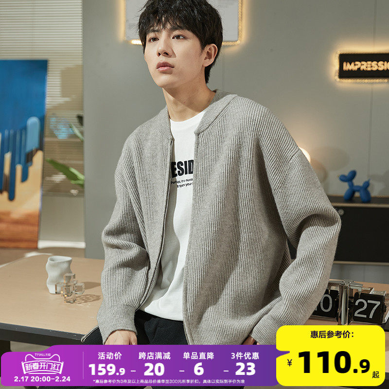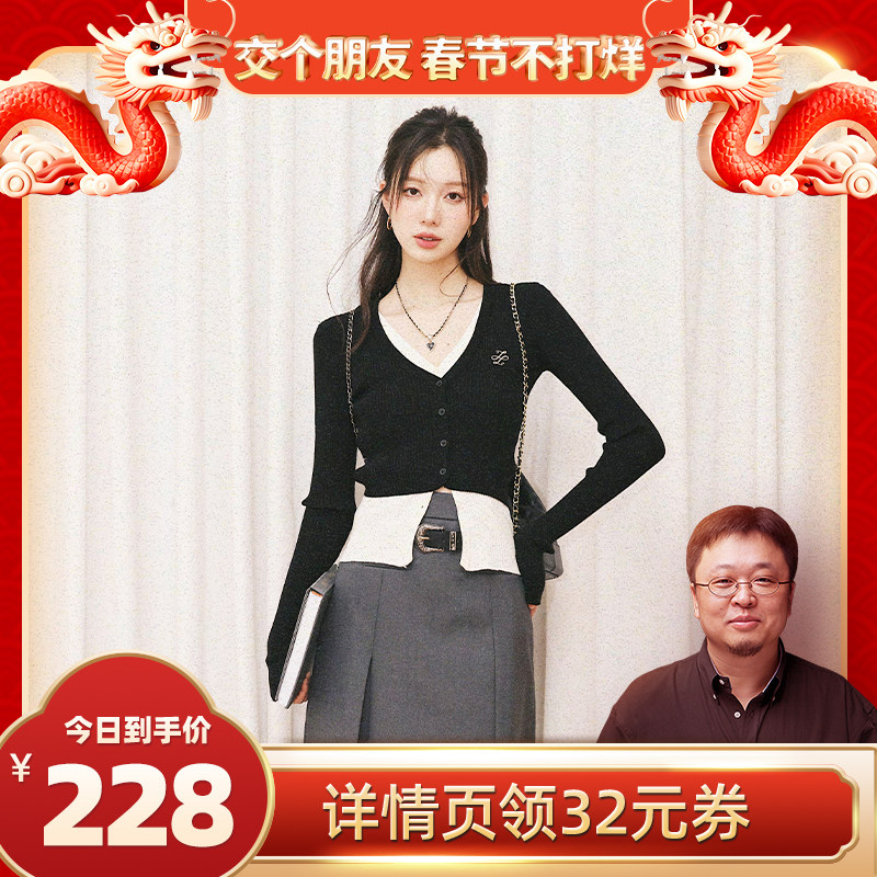 tb开衫女毛衣短款外套红色修身春初灰色学院风V领针织衫2022上衣