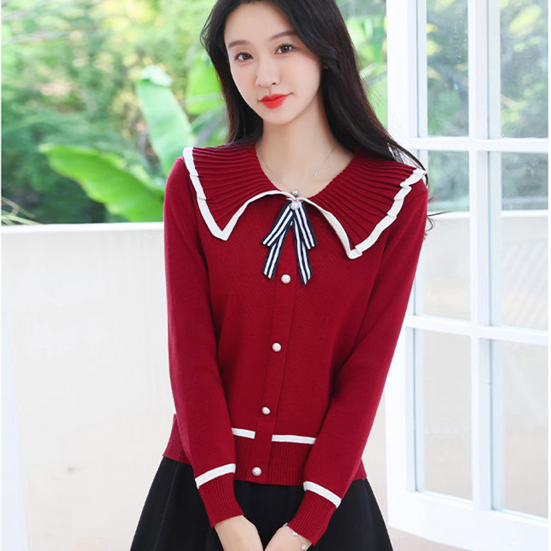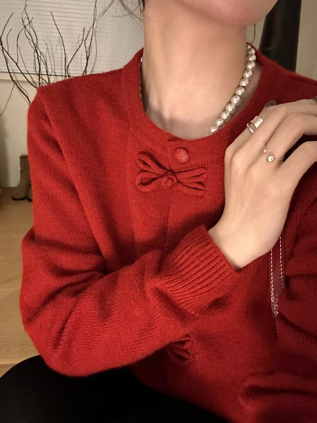 tb红色氛围感开衫女2024春秋新款毛衫针织女本命年圣诞节短款外套