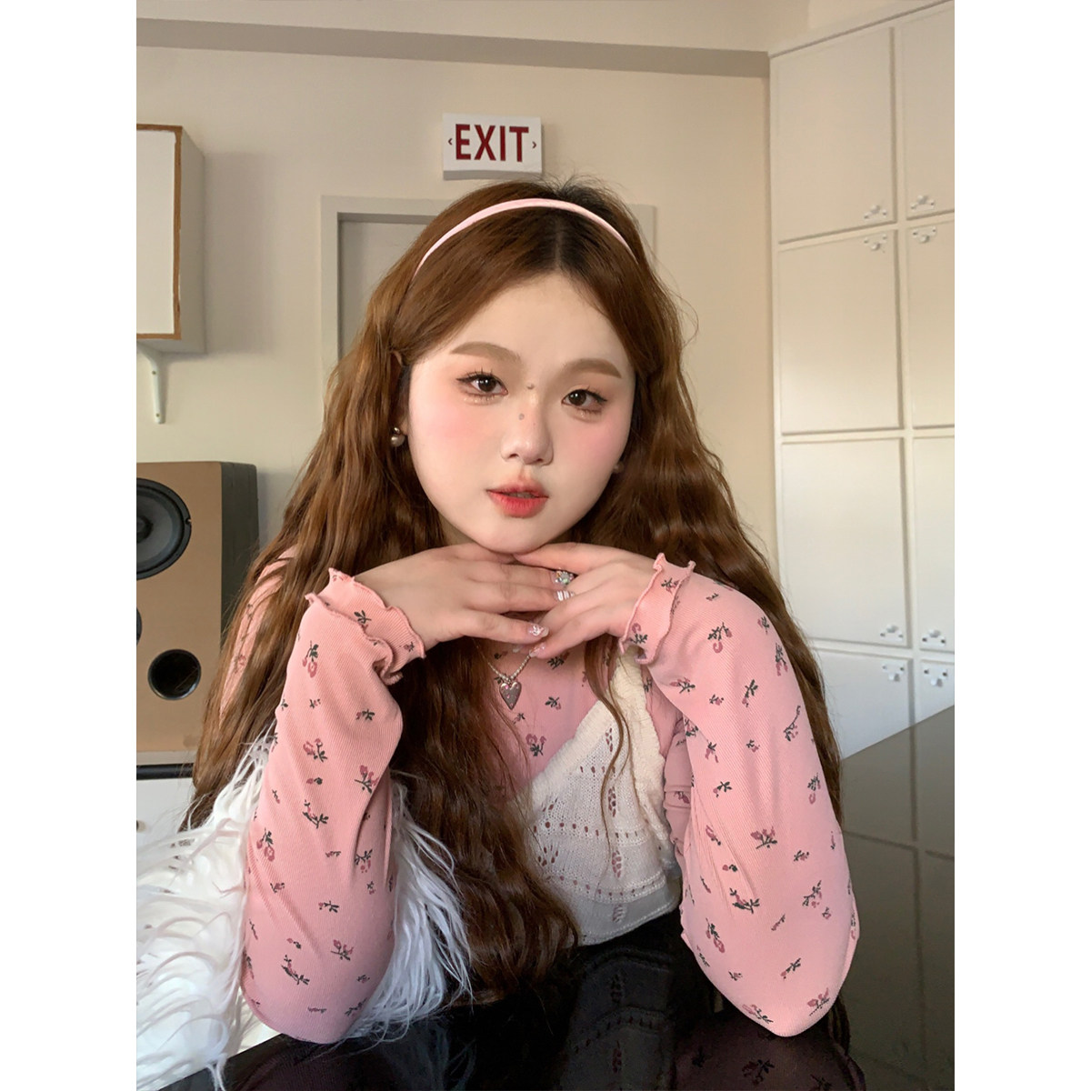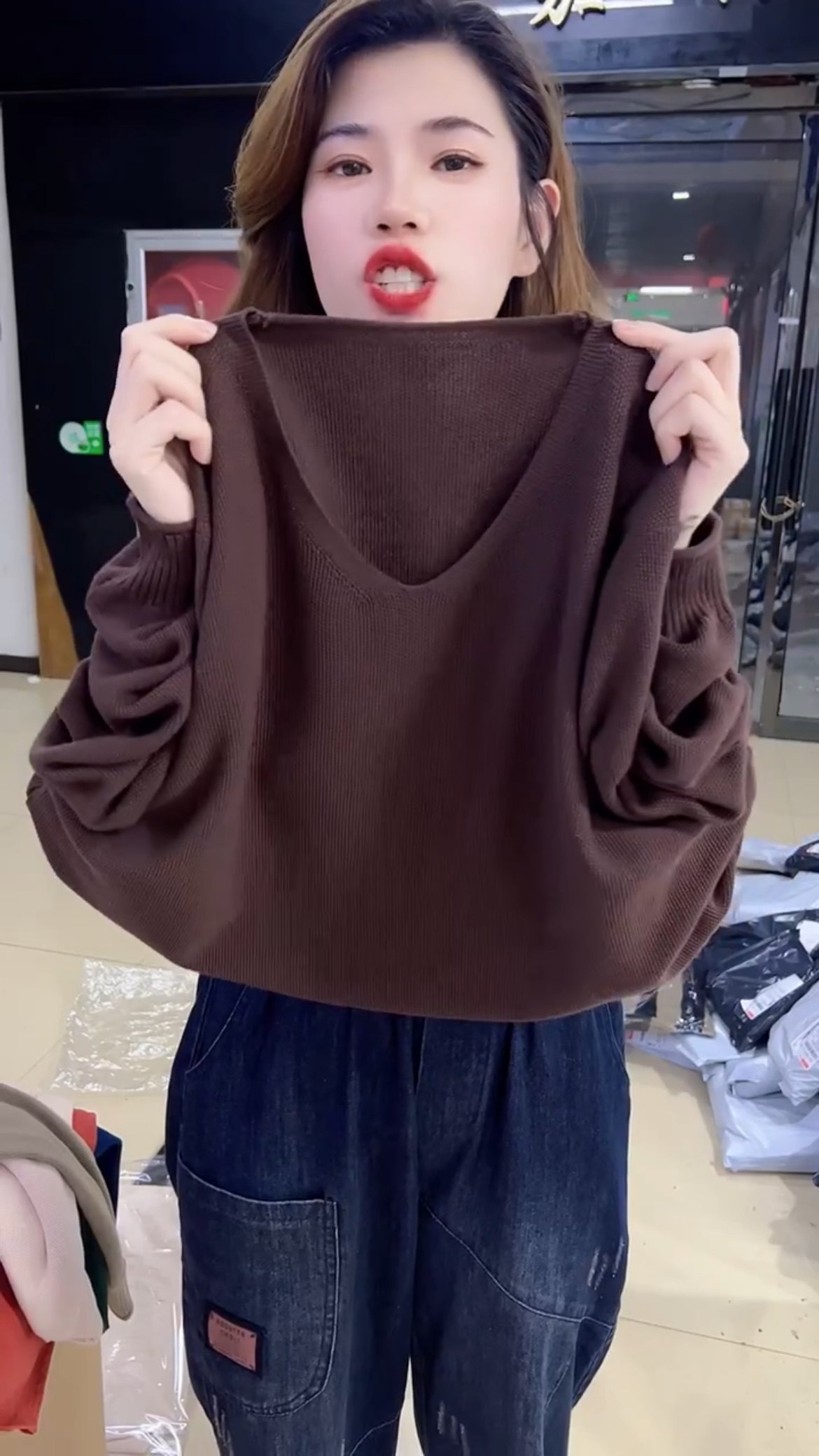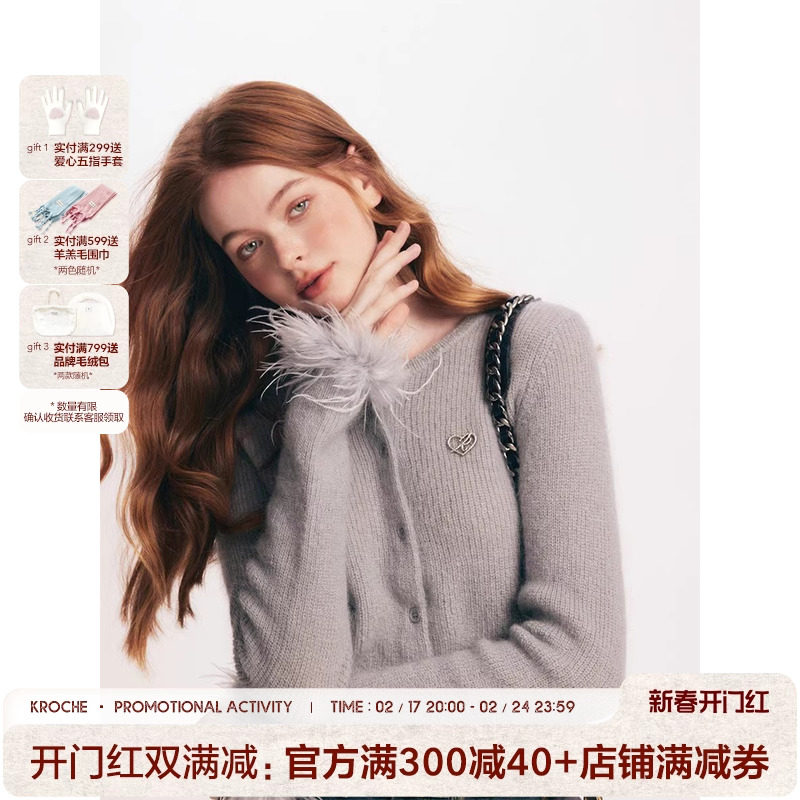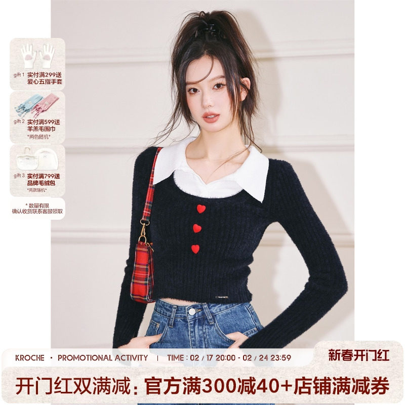 宣璐同款 Kroche 植绒爱心扣仿貂绒假两件针织打底衫女秋冬款上衣