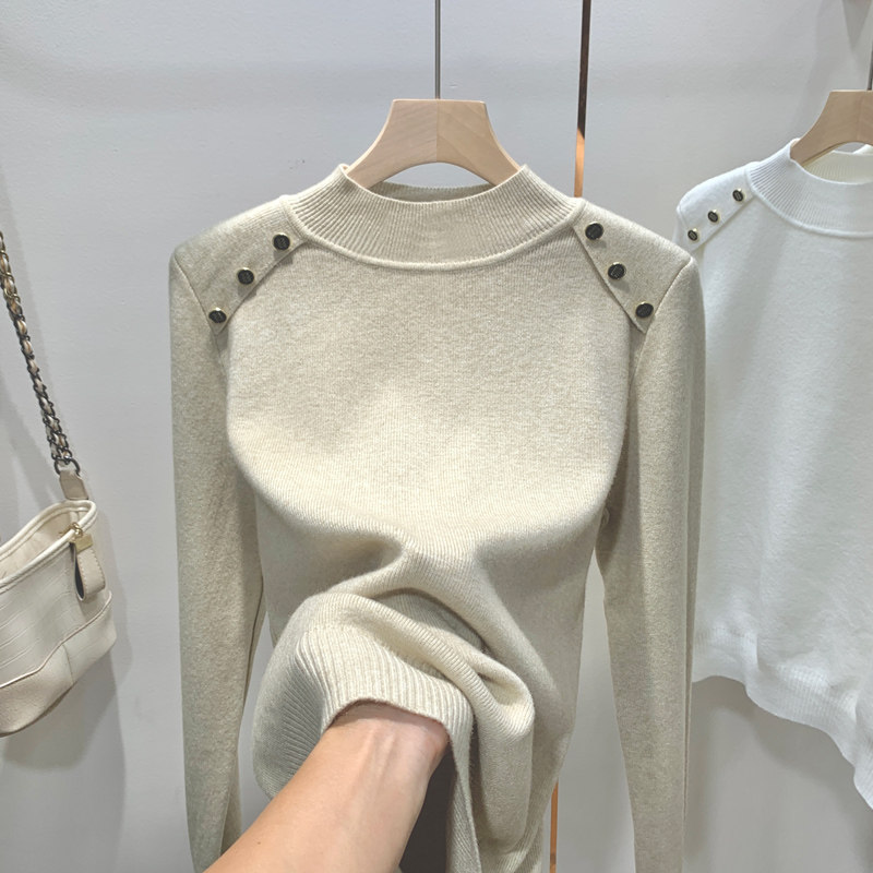 ourhour 薄款显瘦 纯色亨利领多扣修身打底衣 女秋冬设计感针织衫
