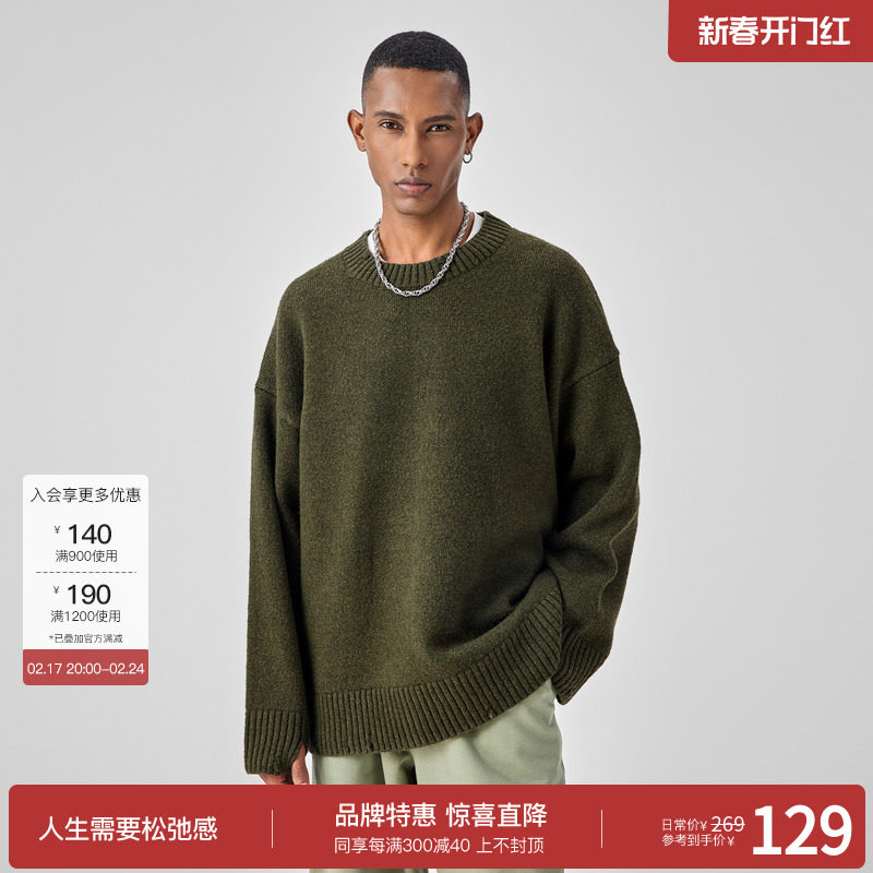 半高领毛衣男士宽松潮流圆领针织衫2023秋冬季新款加厚保暖打底衫
