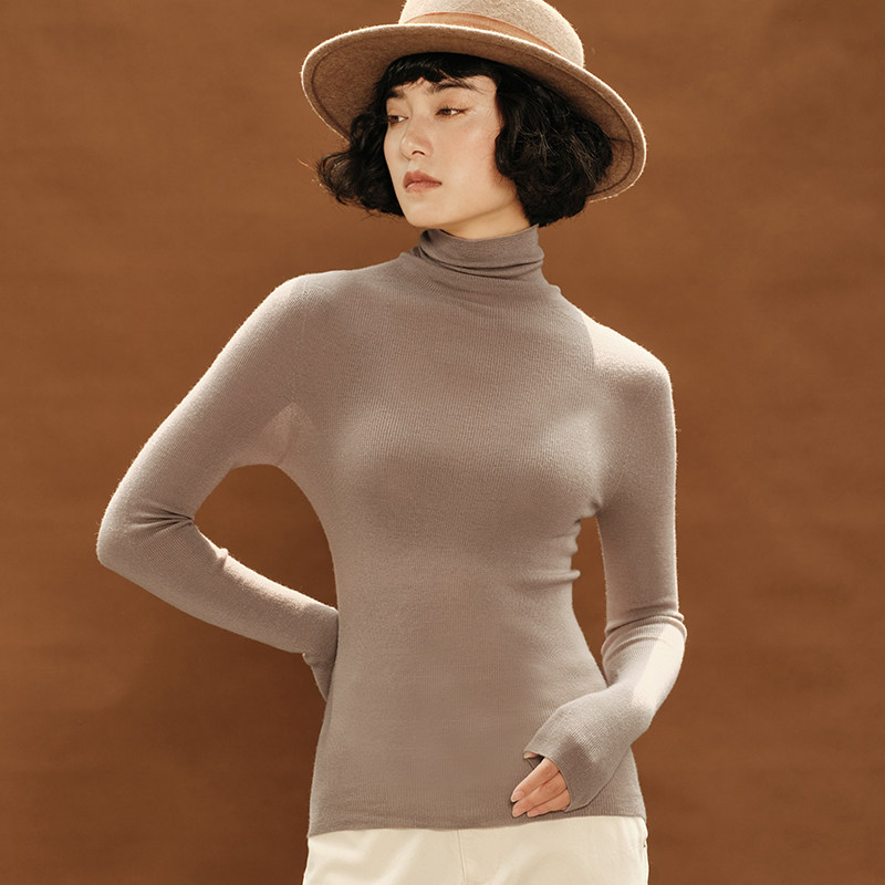 WZT04077 茉莉雅集120S全羊毛18针无缝一体高领坑条打底针织衫女