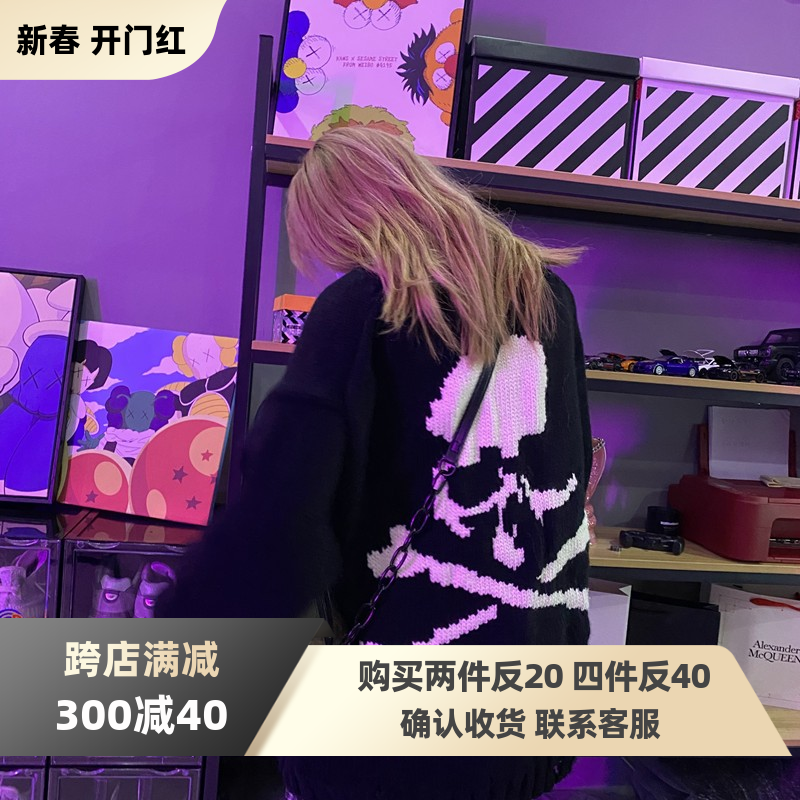 重磅 MMJ暗黑骷髅头毛衣破洞针织衫休闲圆领卫衣ins秋冬高街宽松