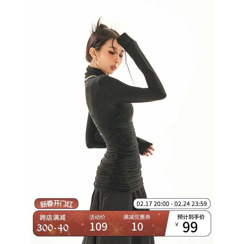 野生zerocircle黑灰白色针织上衣女秋冬修身中长款内搭高领打底衫