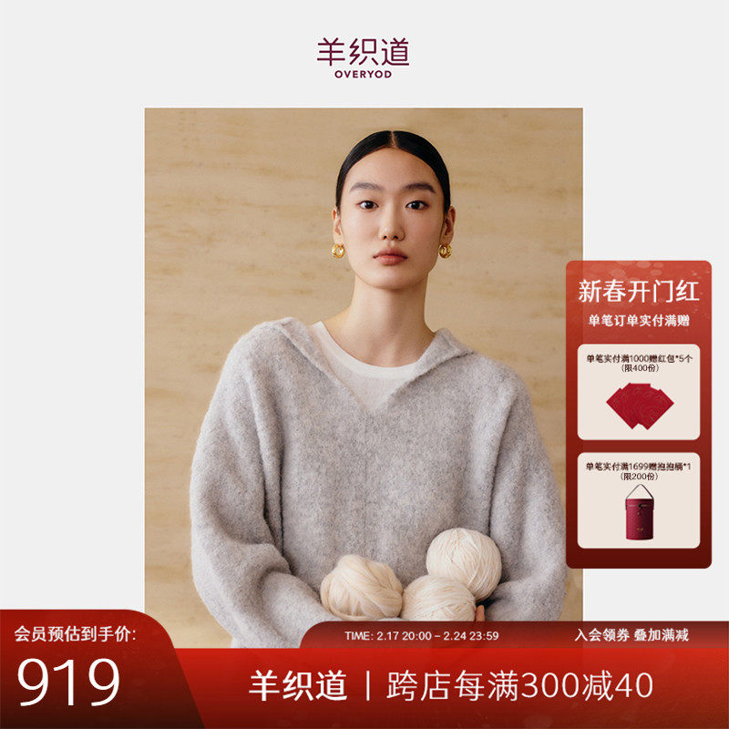 欧洲站一粒扣羊绒衫女冬装加厚连帽毛衣慵懒宽松卫衣套头针织打底