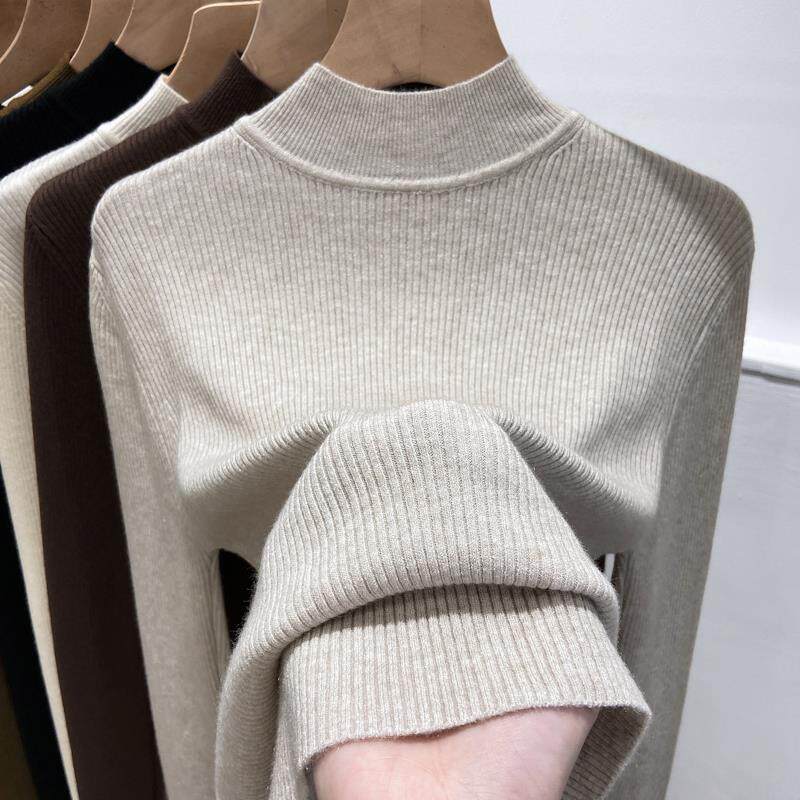 无缝德绒半高领针织衫女衣香丽影2023年秋冬季新款洋气打底衫上衣