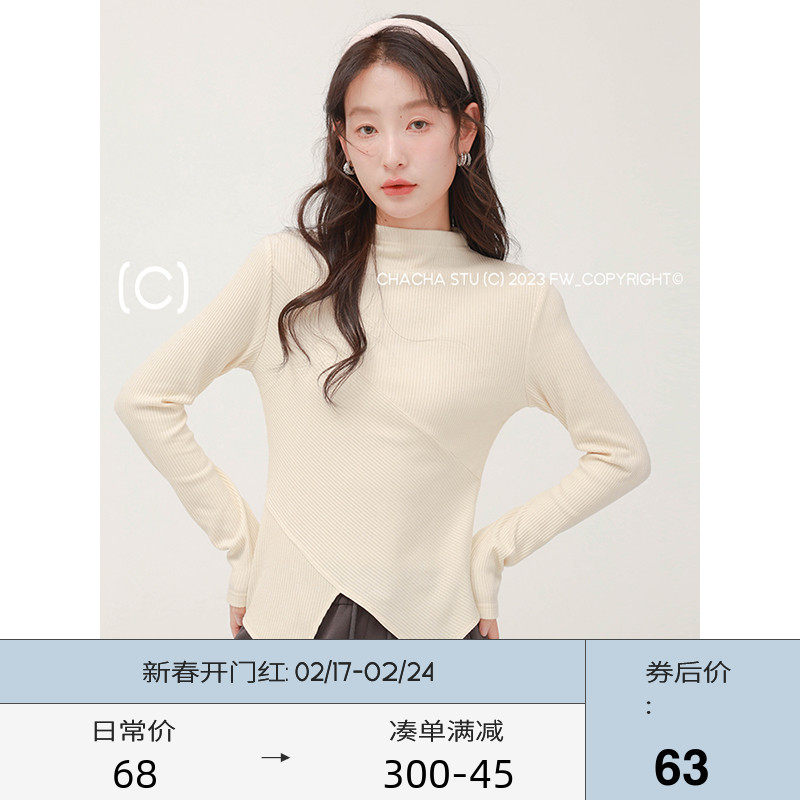 CHACHASTU 不规则开叉叠穿内搭打底衫女秋冬高级感长袖针织上衣
