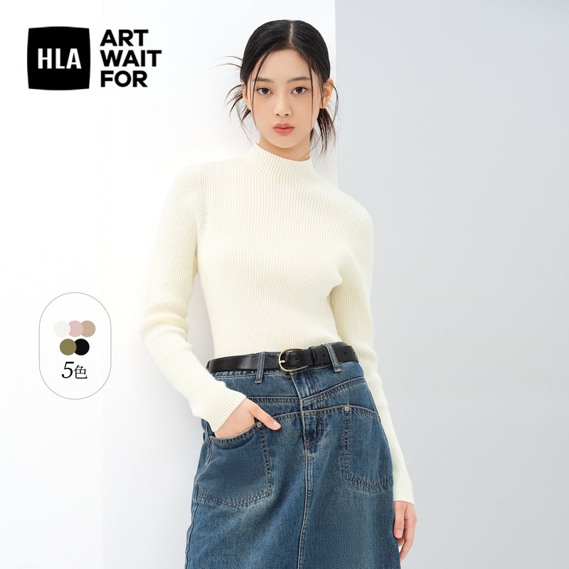 【半高领】HLA/海澜之家长袖针织衫23秋新款套头简约纯色毛衣女装