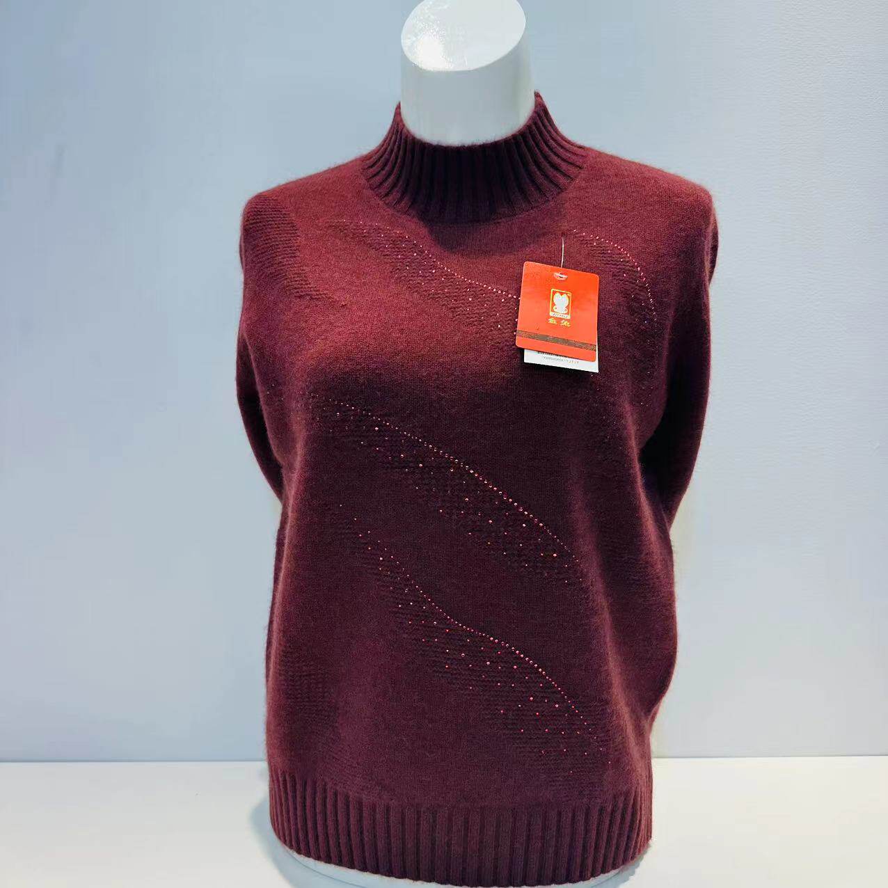 金兔纯羊毛衫毛衣女闪亮烫钻羊绒针织衫套头秋冬新品中老年妈妈装