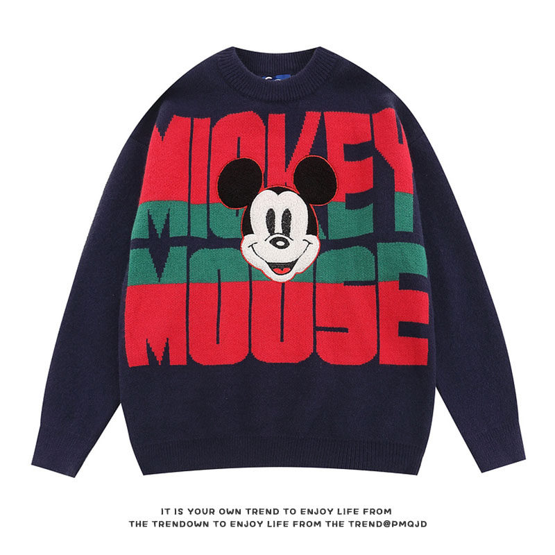 芃漫米奇字母可爱圆领毛衣日系学院风宽松情侣针织衫网红小众毛衫