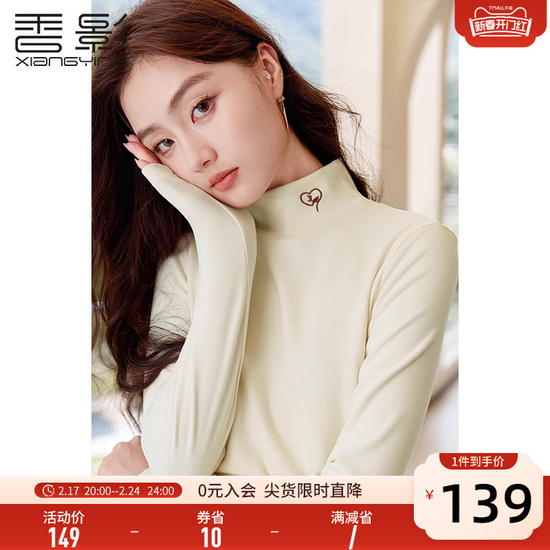 【德绒】香影黑科技内搭针织上衣女2023秋冬新款米白半高领打底衫