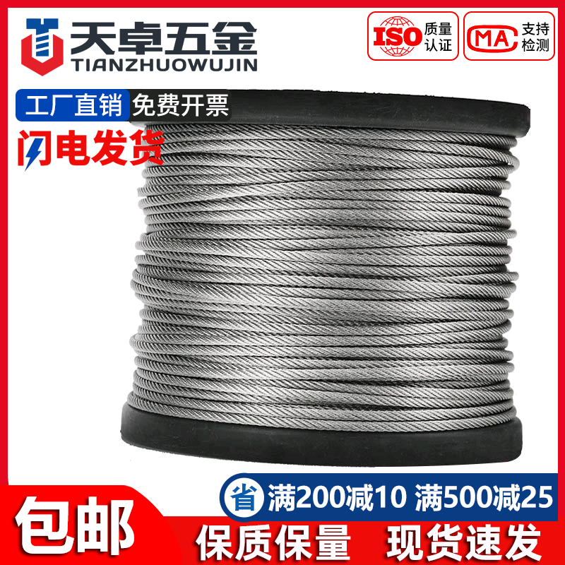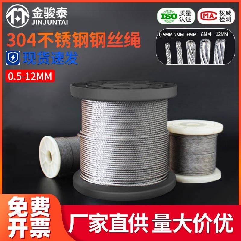 304不锈钢钢丝绳钢索绳细软晾衣绳架包塑起重M1/2/3/4/5/6/8/10mm