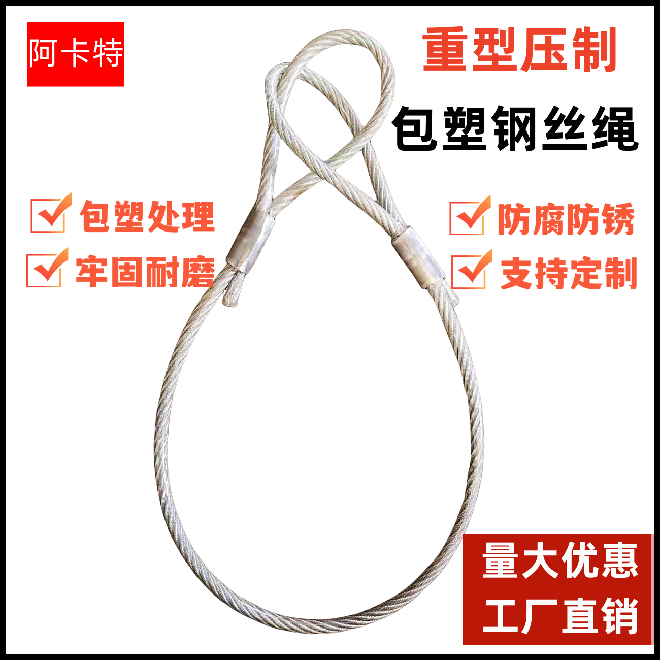 包塑包胶压制钢丝绳镀锌压制钢丝绳拖车锁电动车防盗窗帘绳晾衣绳