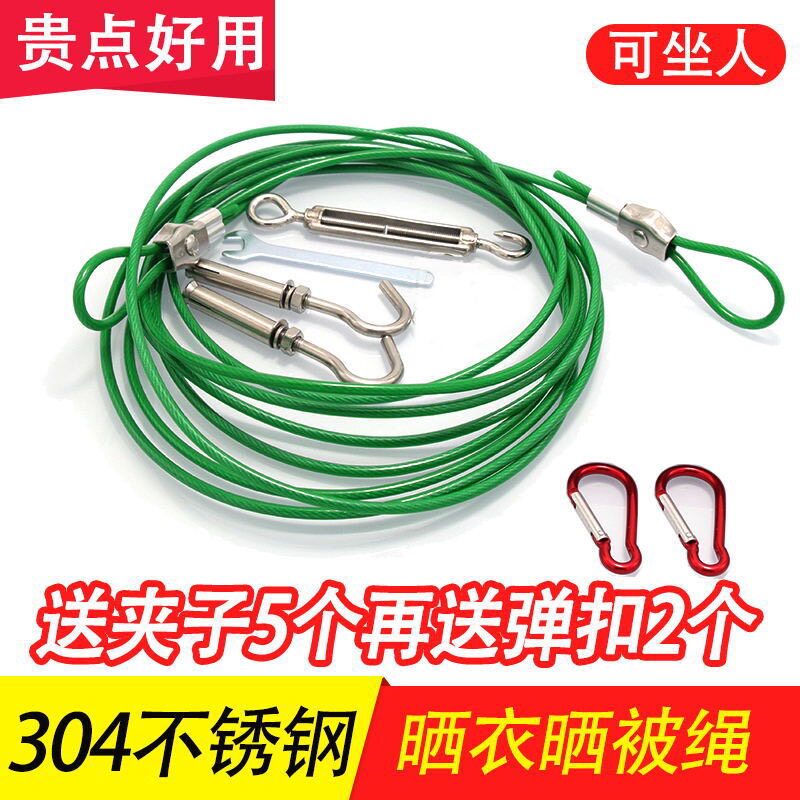 家用晾衣绳室外免打孔 304不锈钢晒被绳户外晒被钢丝 防滑防风多