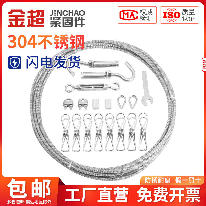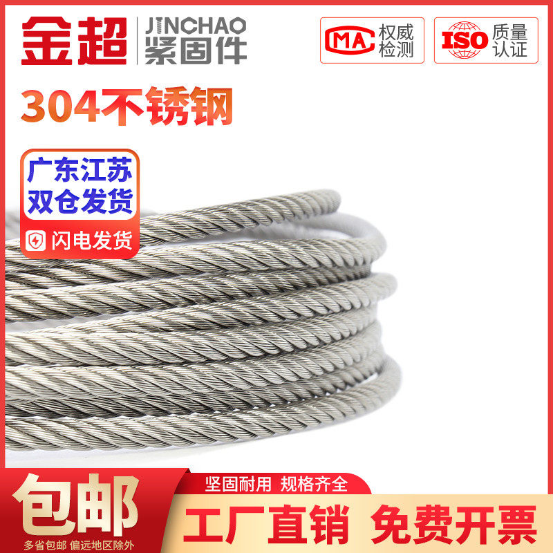 金超304钢索绳细升降晾衣绳架不锈钢软细小钢丝绳1/2/3/4/5/6/8mm